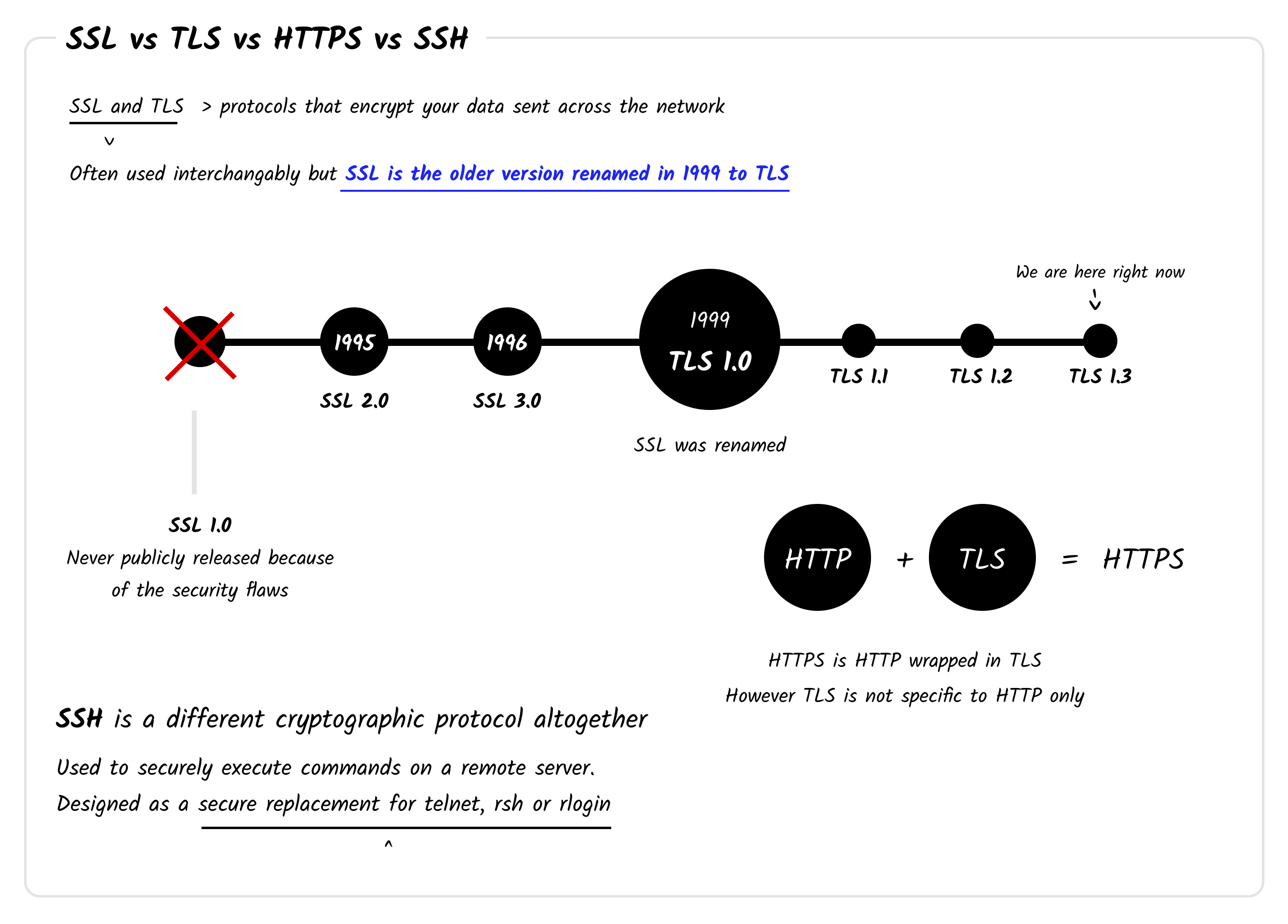 Quick tidbit on the differences between SSL, TLS, HTTPS and SSH